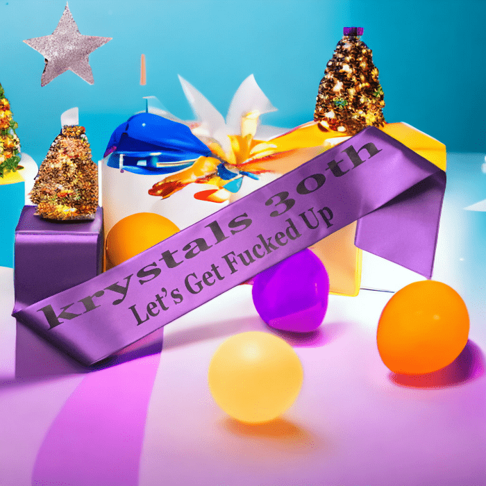 Looking to add a personal touch to your event? Our Party Sashes, crafted from premium Elan single-faced satin ribbon, offer the perfect canvas for your creativity. With the option to design your own sash, you have full control over the wording, font, color, and clip art, ensuring it perfectly complements your occasion. Each sash comes equipped with Velcro, allowing for easy length adjustments to accommodate all body types. Approximating at 1.8 meters in length and 10cm in width, it provides ample space for your customization. Elevate your celebrations with a Personalised Sash from Heartfelt Inspirations.