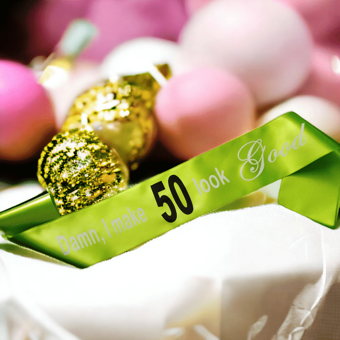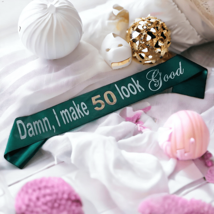 Order now and make your birthday unforgettable with a sash that truly says, “Damn I Make 50 Look Good!”
