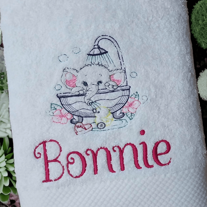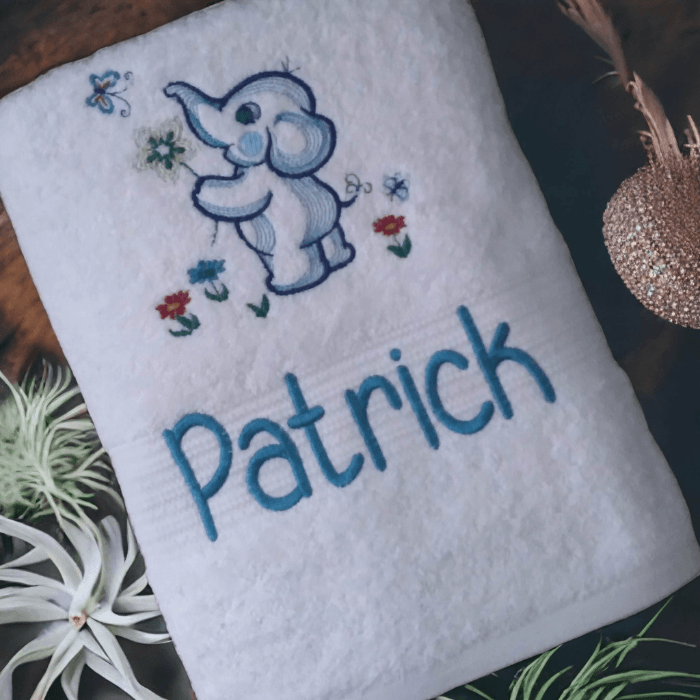 Embroidered Personalised Elephant Towel with Name…Many Designs to Choose From