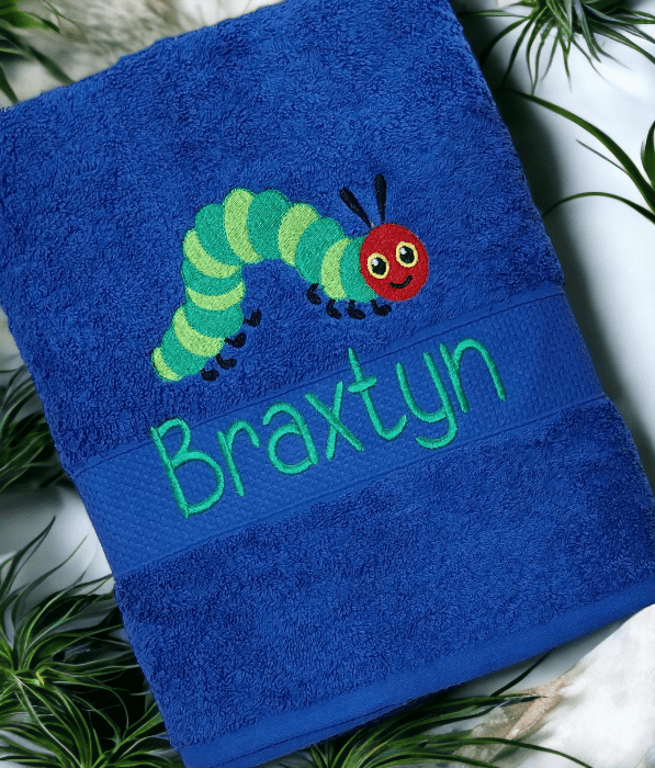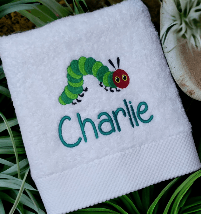 Embroidered Personalised Hungry Caterpillar Towel with Name