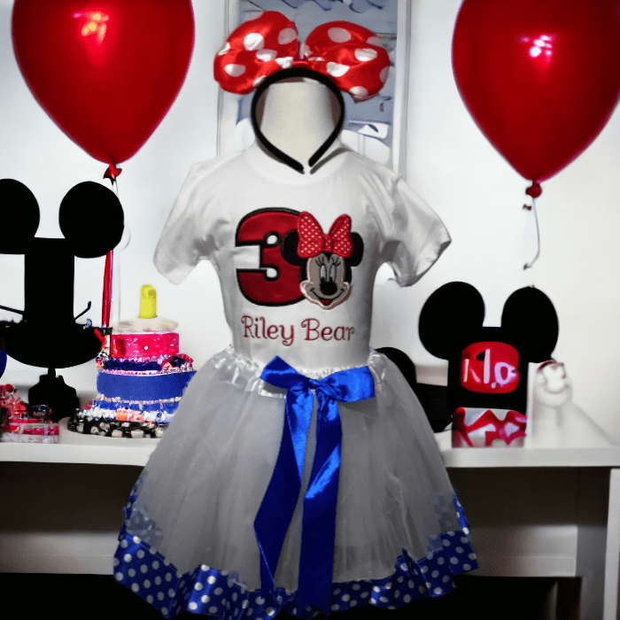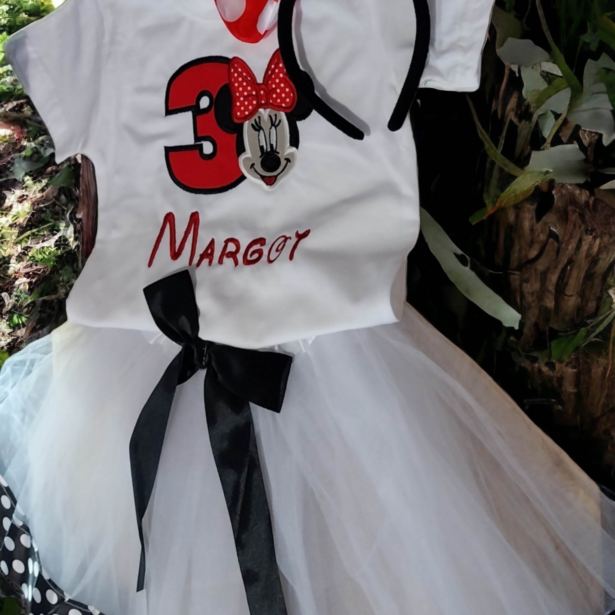 Minnie Birthday Personalised Embroidered T Shirt & Tutu Birthday Three Piece Set.