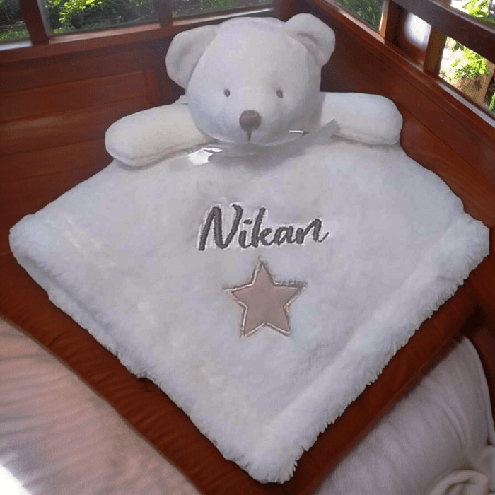 ****Personalised embroidered teddy bear fluffy comfort blanket