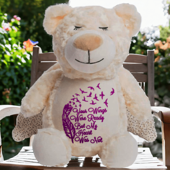 Personalised Embroidered Condolences Angel Cubby Bear with Wings