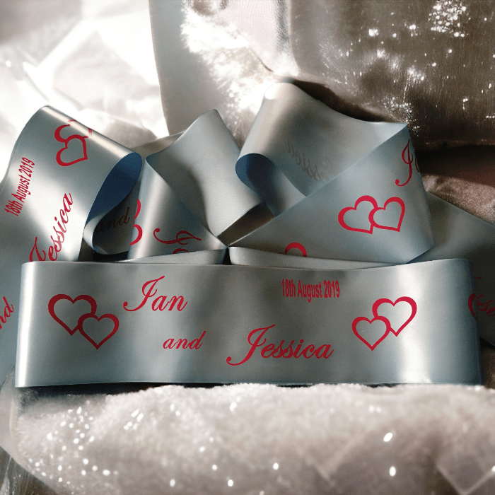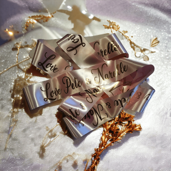Add a personal touch to your special day with Heartfelt Inspirations’ custom bridal cake ribbon. Order now and make your wedding cake truly one-of-a-kind!
